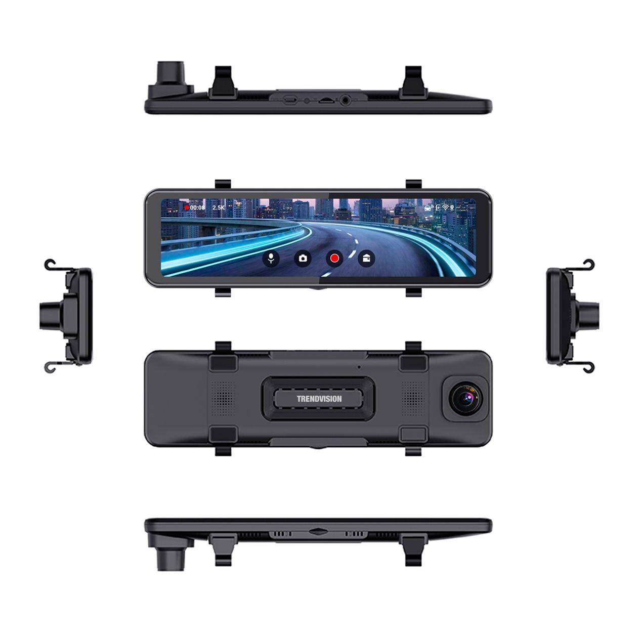 Быстросъёмные крепления-стяжки позволяют легко установить видеорегистратор на штатное зеркало практически в любом автомобиле. Аппарат не оставит царапин или ещё каких-либо повреждений на штатном зеркале, так как на задней стороне видеорегистратора есть специальные прорезиненные платформы. А на тот случай, если зеркало вашего автомобиля шире, чем TrendVision CarPlay Mirror, у аппарата присутствует выдвижной механизм, благодаря которому камера всегда будет направлена на дорогу. Также объектив может прокручиваться в разные стороны, поэтому всегда можно настроить кадр под собственные нужды.