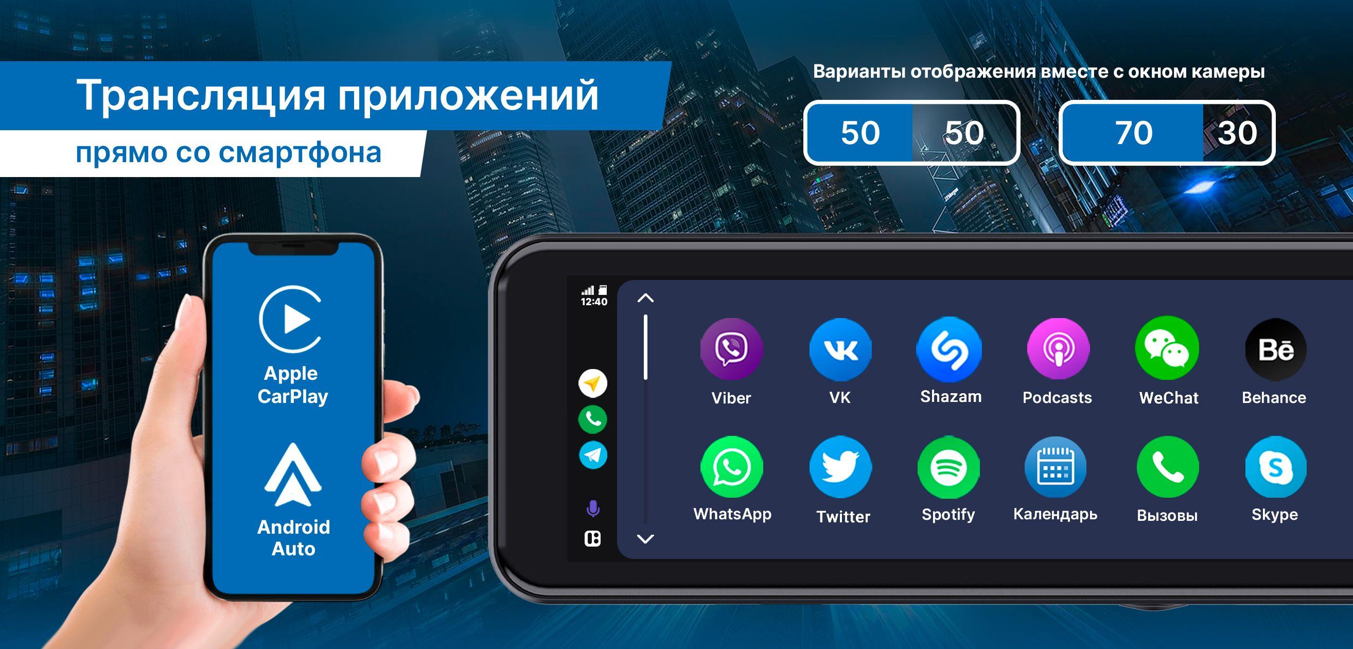 - Техологии "Apple CarPlay" и "Android Auto" (для транслирования приложений со смартфона на зеркало)
