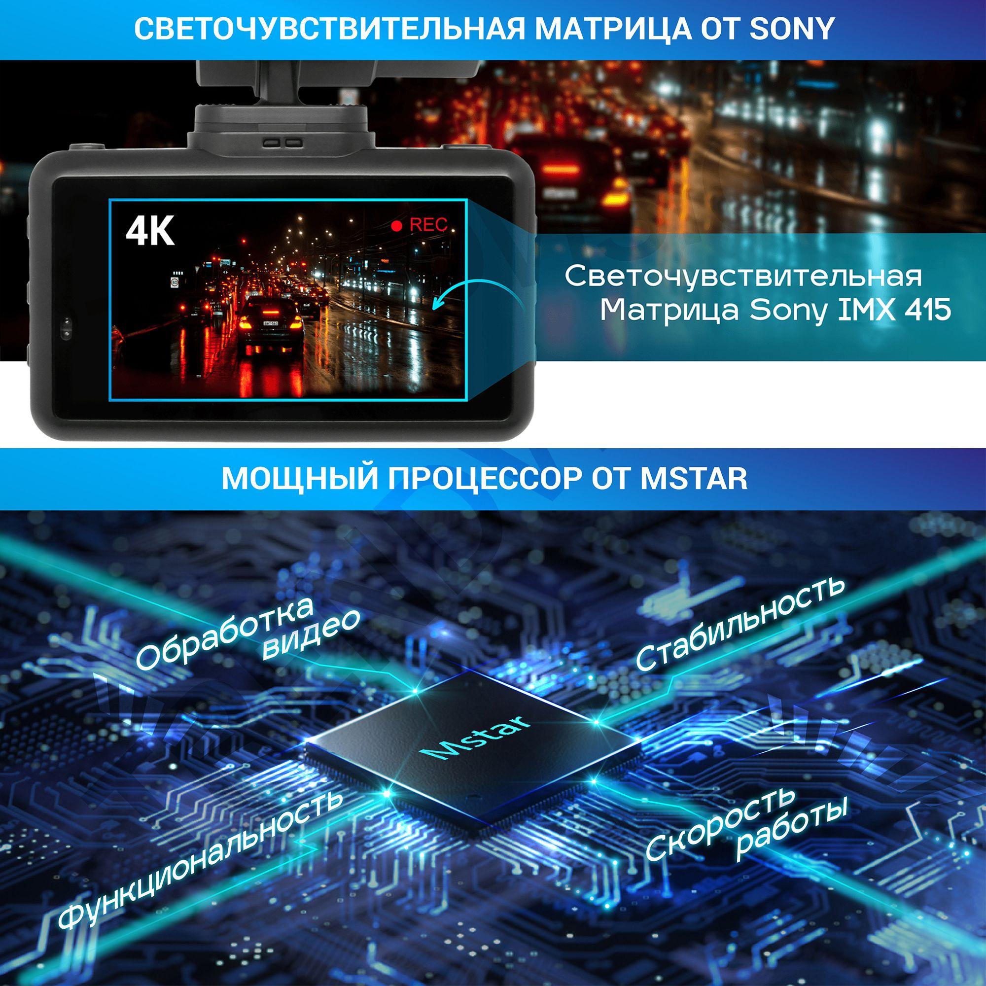 Аппарат оснащён матрицей SONY STARVIS IMX415 – одной из лучших на рынке авторегистраторов на 2022-2023 год! Устройство снимает в реальном разрешении 4K Ultra HD, без интерполяции. Качество картинки достигает той степени, при которой днём и ночью, в дождь и солнце, аппарат не теряет ни единой детали происходящего на дороге – всегда четко видны номера машин, знаки дорожного движения и даже, в отдельных случаях, лица людей.