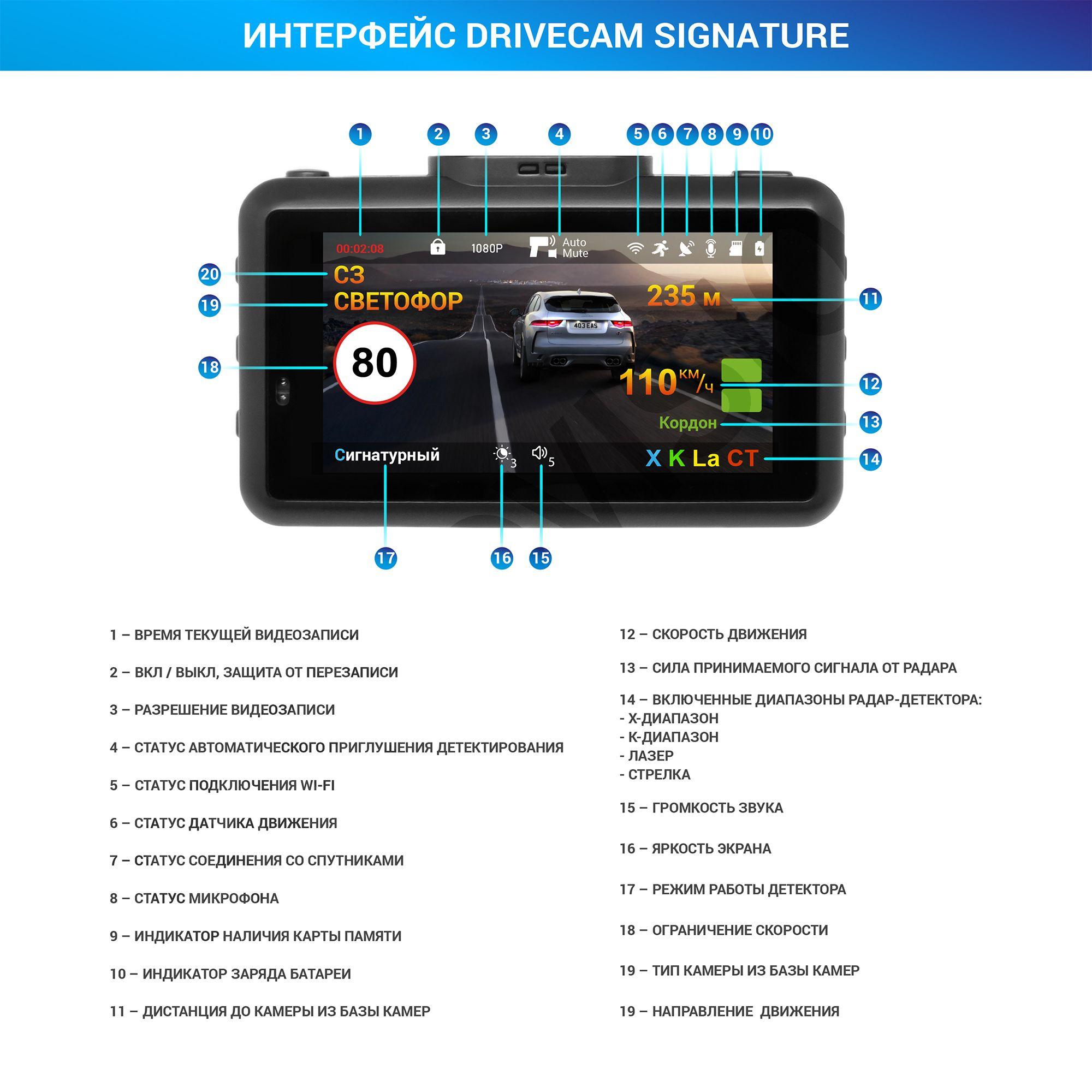 Благодаря сигнатурному радар-детектору, TrendVision DriveCam Real 4K Signature 2CH способен распознать сигналы по названию радарных излучателей, а так же в диапазонах (K, X, Лазер и Стрелка), в которых работают все радарные комплексы на дорогах России и стран СНГ. Перед оповещением о радаре устройство фильтрует сигнал, исключая посторонние радиошумы, исходящие от дверей или круиз-контроля автомобилей. Благодаря данной сигнатурной системе исключаются всевозможные ложные срабатывания.