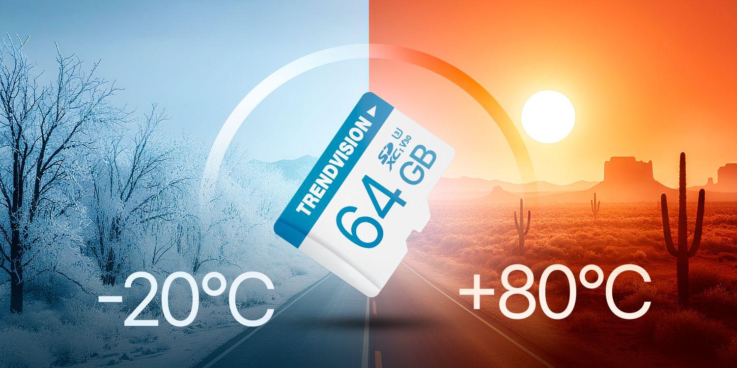 Карта устойчива к экстремальным условиям и сохраняет стабильность даже при сильном морозе или жаре. Это особенно важно для устройств, которые работают в машине, на улице, в путешествиях или при длительных съёмках.