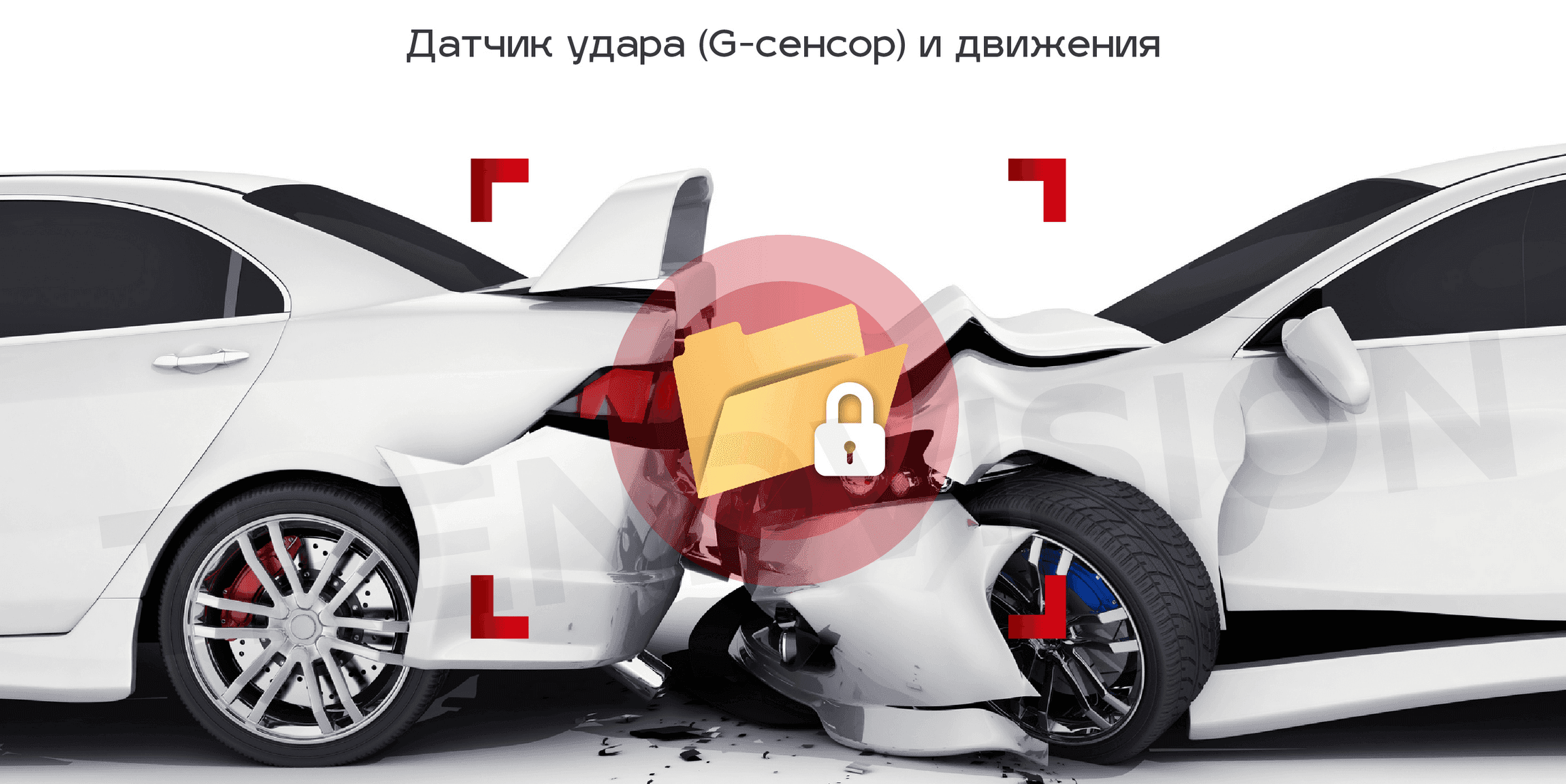 Аппарат оснащён датчиками, которые, даже при малейшем ударе или опасном движении в кадре, автоматически сохраняют записанный видеоролик в нестираемую область памяти. Благодаря этому важные для разрешения ДТП или кражи данные будут всегда защищены от перезаписи или удаления.