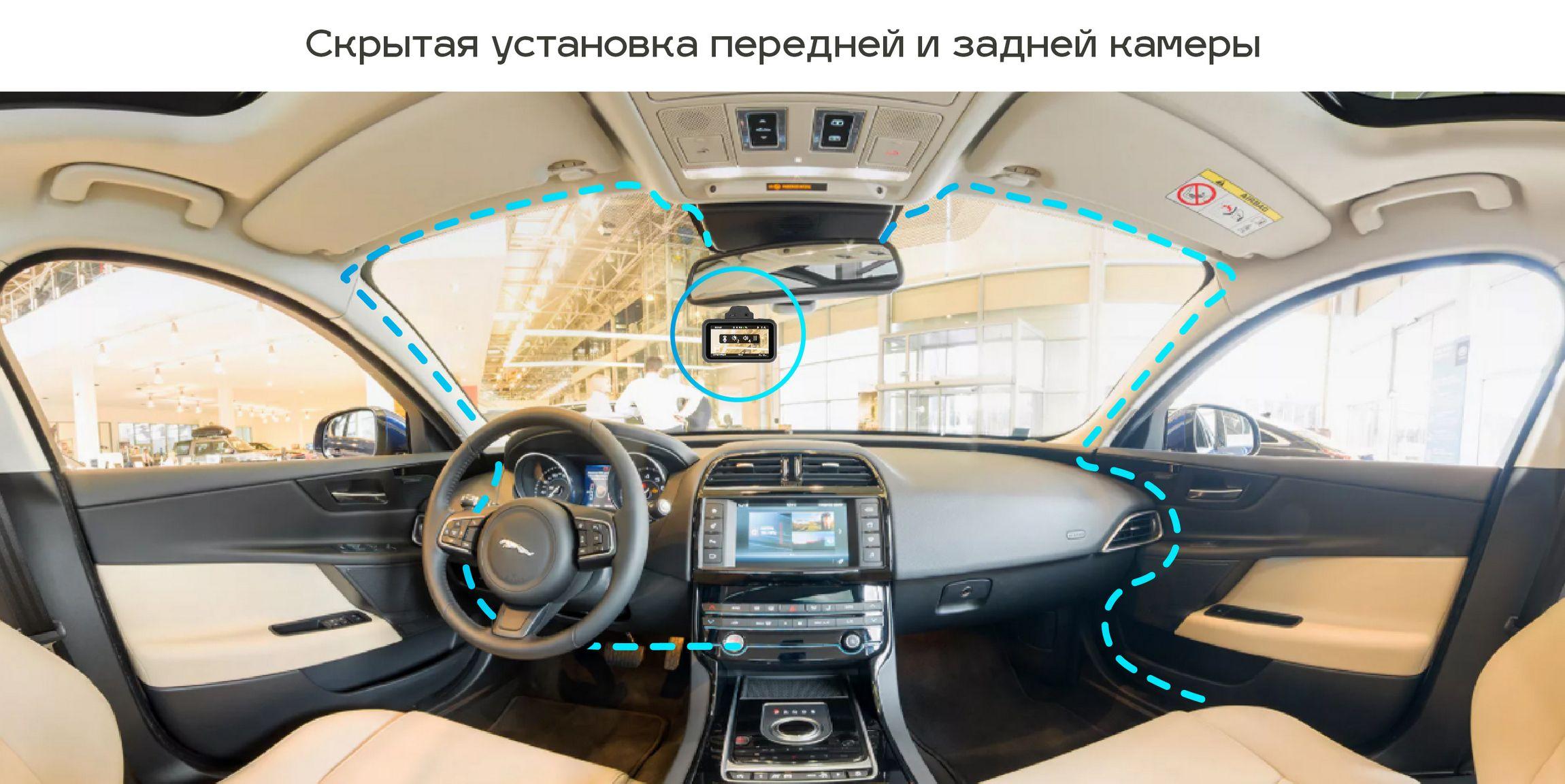 Провод питания крепится прямо к кронштейну, обеспечивая устройству сквозное питание. За счёт этого и оптимальной длины проводов есть возможность скрытно провести их по скрытым областям автомобиля (под обшивкой, стойкой и тд). Таким образом само комбо-устройство и GPS-модуль будут выглядеть в машине как штатные.