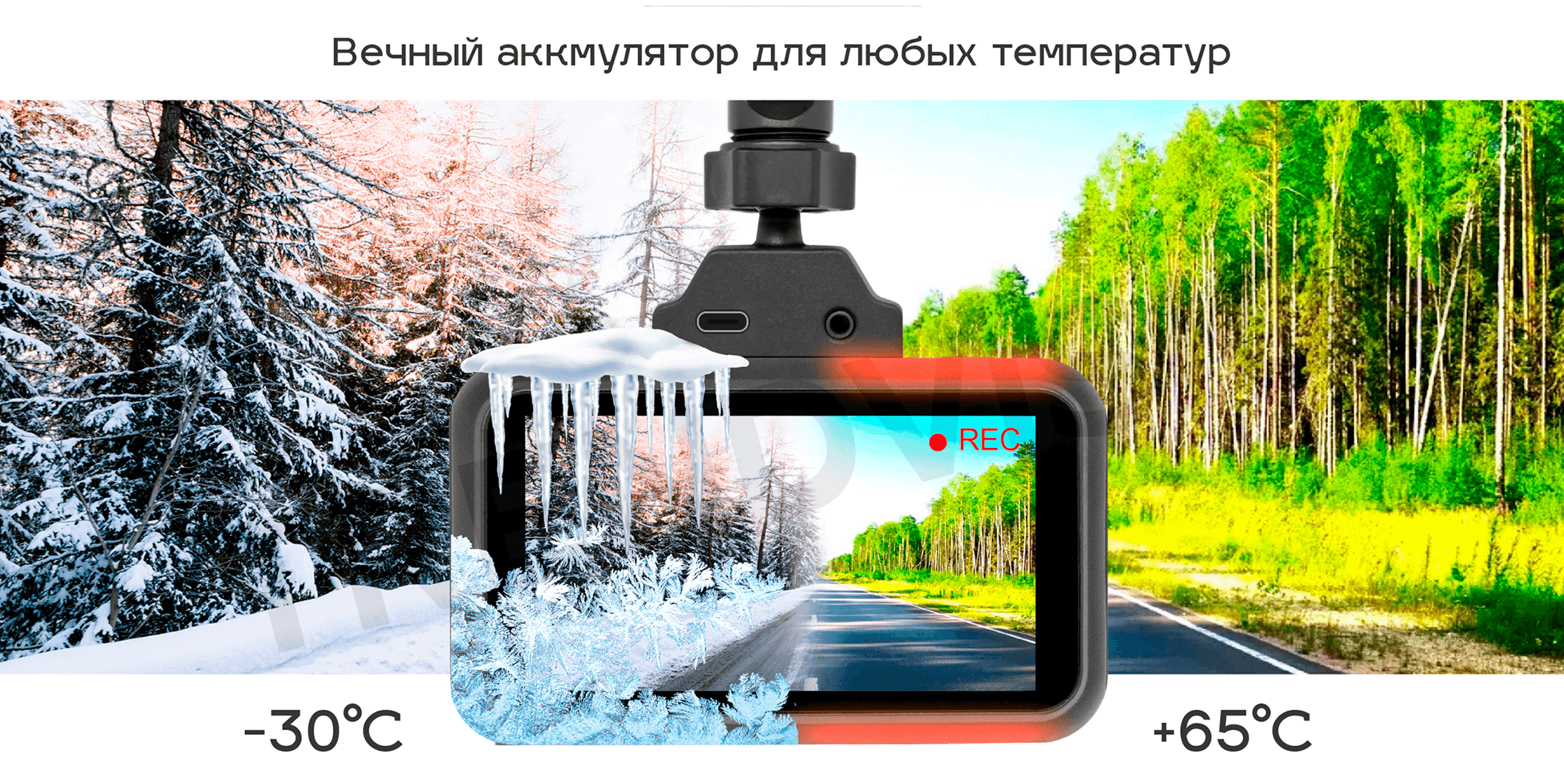 Вместо стандартного литиевого аккумулятора в TrendVision Hybrid Signature Real 4K 2CH установлен суперконденсатор. Он стабильно выдерживает гораздо больший разброс температур, имеет высокие токи нагрузки, а также гораздо более безопасен (исключает перегрев, взрыв, сбои питания). У суперконденсатора практически неограниченный жизненный цикл – он может быть перезаряжен миллионы раз.