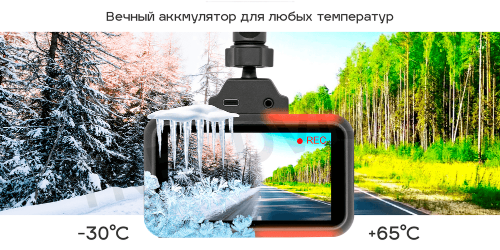 Вместо стандартного литиевого аккумулятора в TrendVision Hybrid Signature Real 4K установлен суперконденсатор. Он стабильно выдерживает гораздо больший разброс температур, имеет высокие токи нагрузки, а также гораздо более безопасен (исключает перегрев, взрыв, сбои питания). У суперконденсатора практически неограниченный жизненный цикл – он может быть перезаряжен миллионы раз.