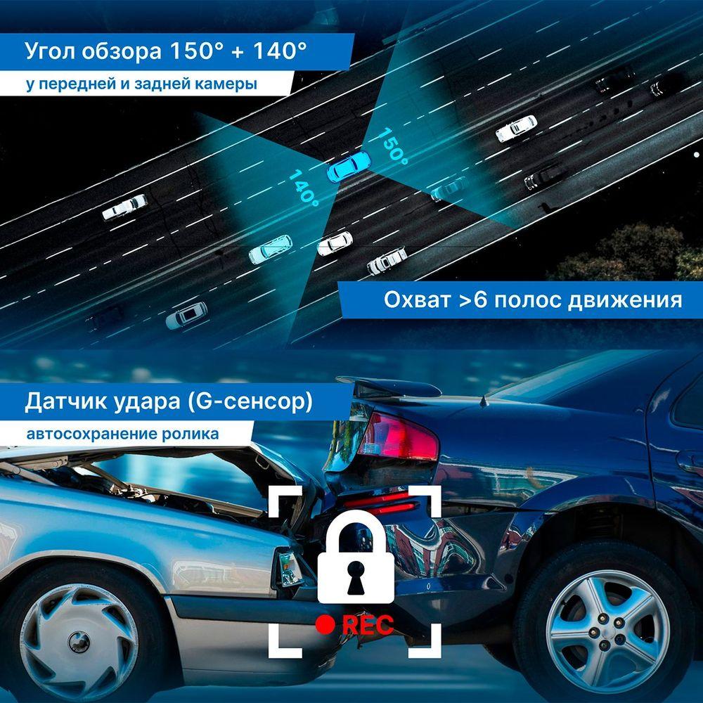 Шестислойный стеклянный объектив у фронтальной камеры с углом обзора 150° и 140° у задней камеры фиксируют ситуацию по всей ширине проезжей части, а также захватывает в кадр зону тротуара.