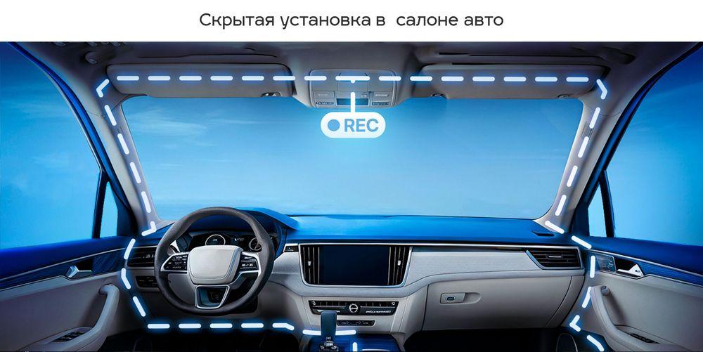 Оптимальная длина проводов даёт возможность аккуратно уложить их под обшивкой или вдоль стоек автомобиля, сохранив эстетику интерьера. Благодаря этому и основной блок, и задняя камера выглядят в салоне как штатное оборудование, не нарушая общего стиля автомобиля.
