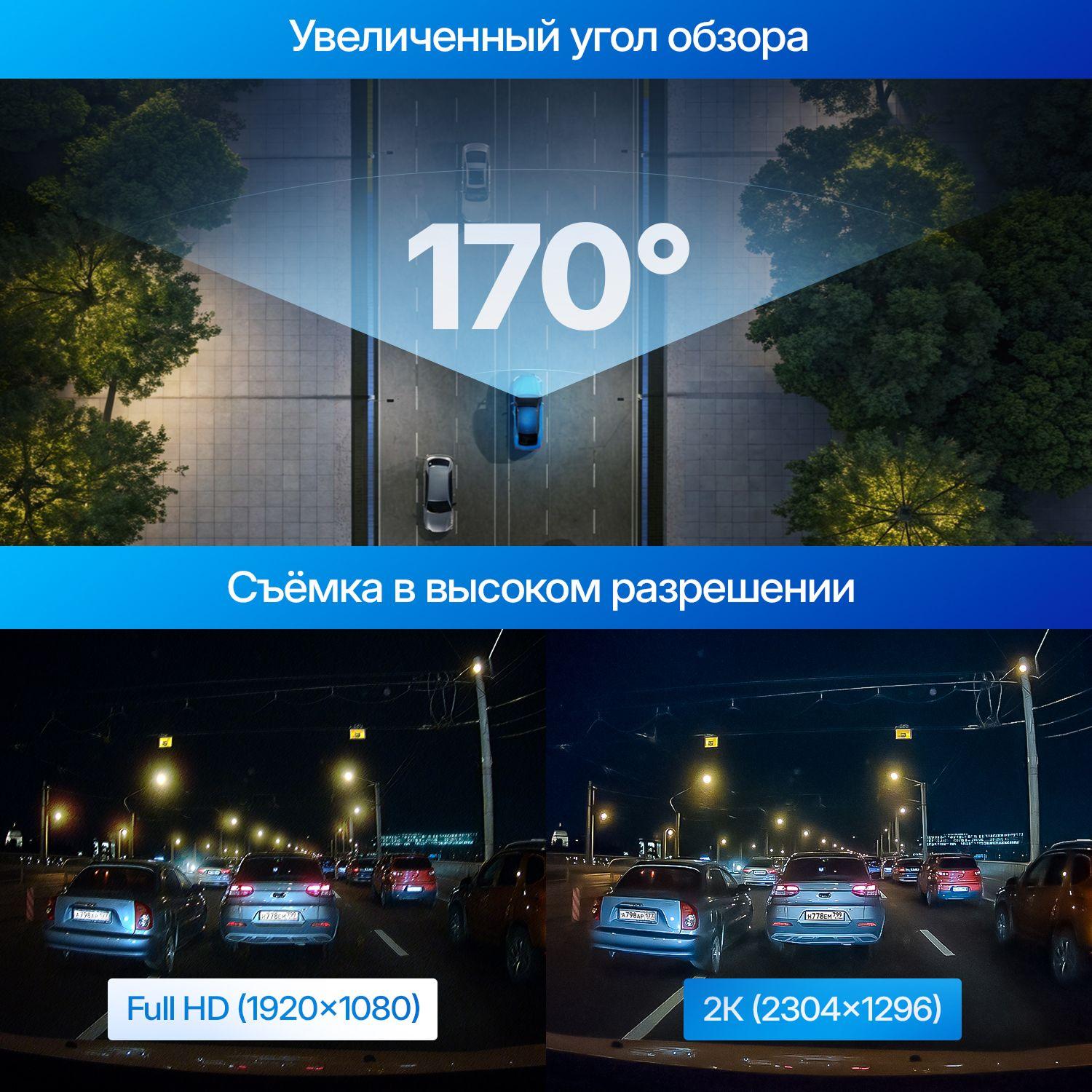 Разрешение записи 2K (2304×1296) для чёткой фиксации номеров, знаков и дорожных деталей