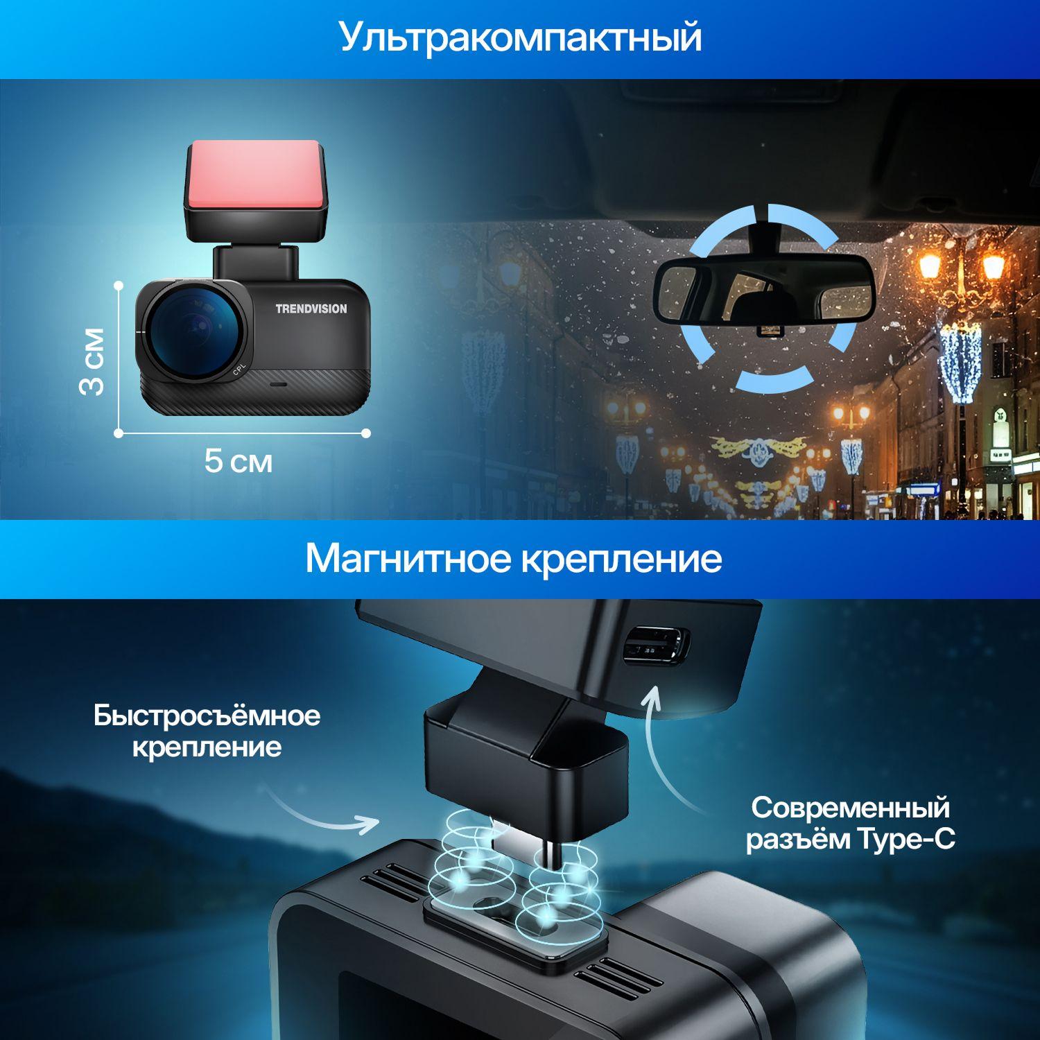 TrendVision Nano 2K Wi-Fi CPL — это ультракомпактный видеорегистратор с разрешением съёмки 2K (2304×1296) и встроенным Wi-Fi. Модель ориентирована на максимальное удобство: управление осуществляется полностью со смартфона через приложение Viidure, а компактные размеры позволяют установить устройство практически незаметно. В комплекте предусмотрен CPL-фильтр для снижения бликов и повышения контрастности изображения.