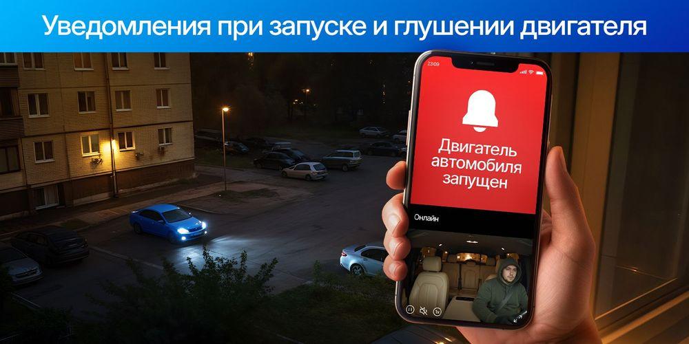 Дополнительно можно включить уведомления о запуске двигателя: сигнал приходит моментально каждый раз, когда автомобиль завели - полезно при риске угона, семейном использовании машины или контроле водителей автопарка. Настройки включаются в мобильном приложении.