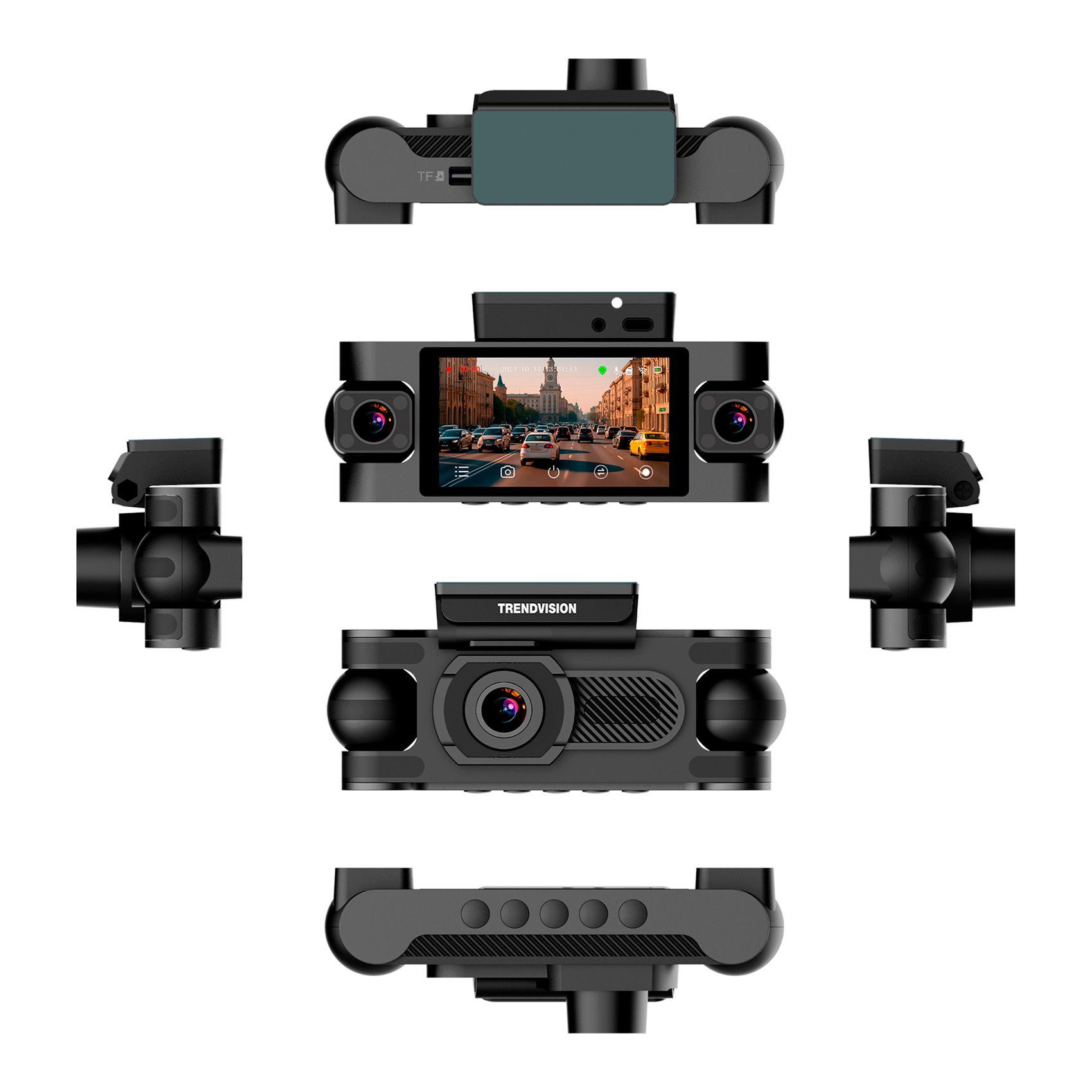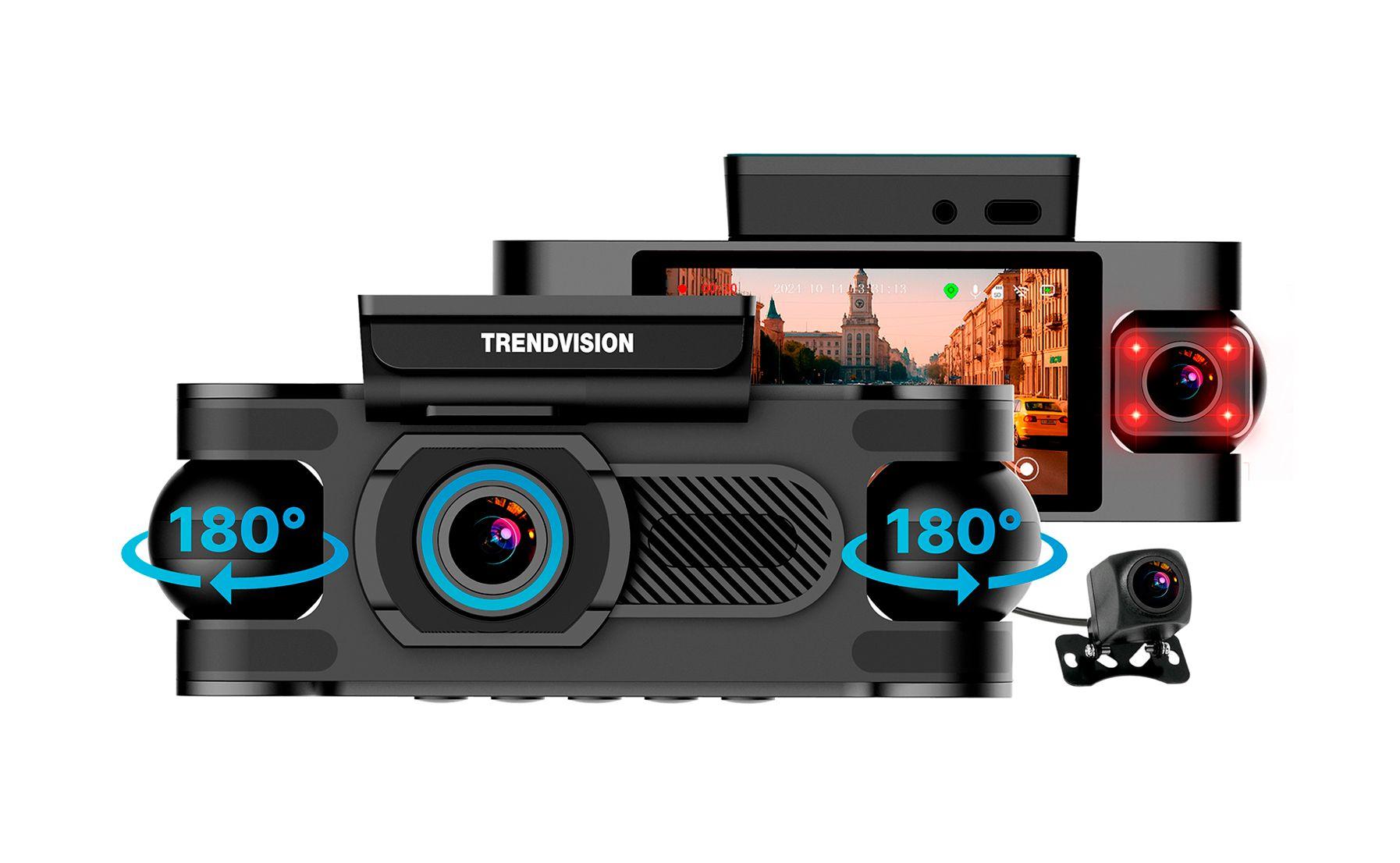 TrendVision Proof 360 GPS – видеорегистратор, который обеспечивает съемку со всех сторон, снаружи и внутри автомобиля. Происходит это за счёт 4-х камер (3 камеры в корпусе + 1 задняя камера). Салонные боковые камеры вращаются на 180° и имеет 8 ИК-светодиода – это позволяет вести улучшенную ночную съёмку в салоне автомобиля. GPS-модуль, автоматически определяющий дату, время, скорость и координаты - в комплекте, встроен в АЗУ. Просматривать видео можно прямо на смартфоне.