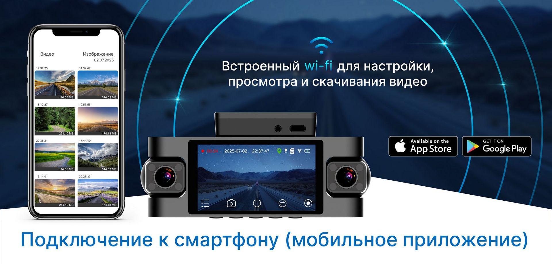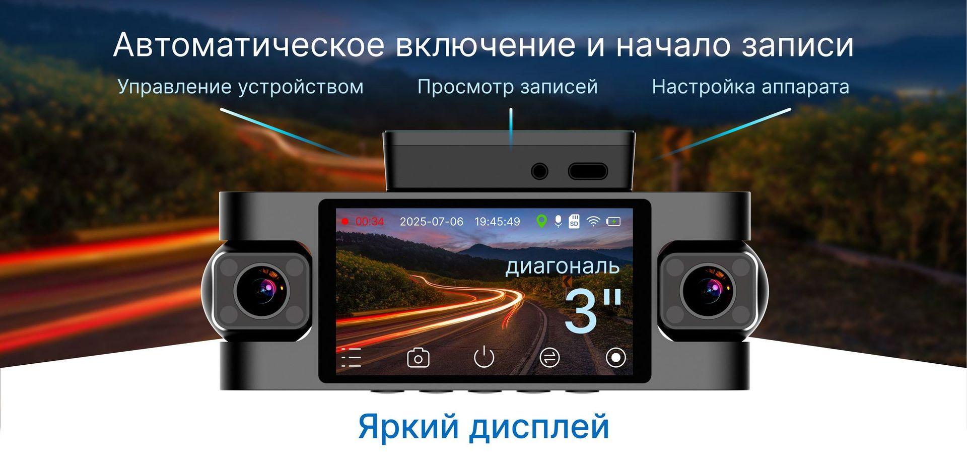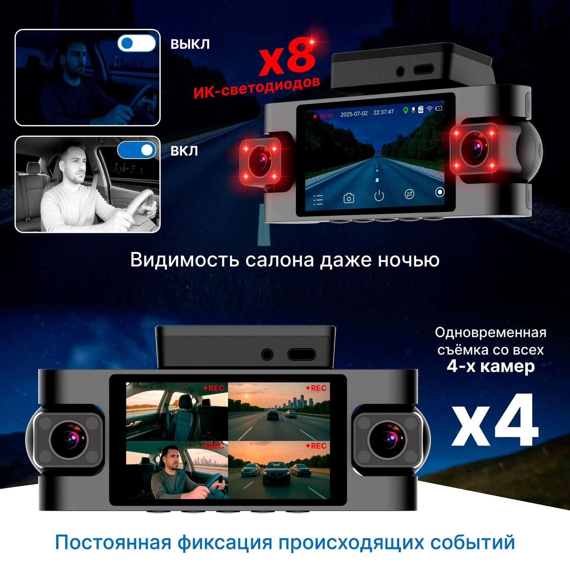 Компактный 4К / 2K видеорегистратор с 2 камерами в 1 корпусе, 4 ИК-светодиодами для ночной съёмки и Wi-Fi (управлением со смартфона). GPS-модуль и задняя Full HD камера (IP67) в комплекте.