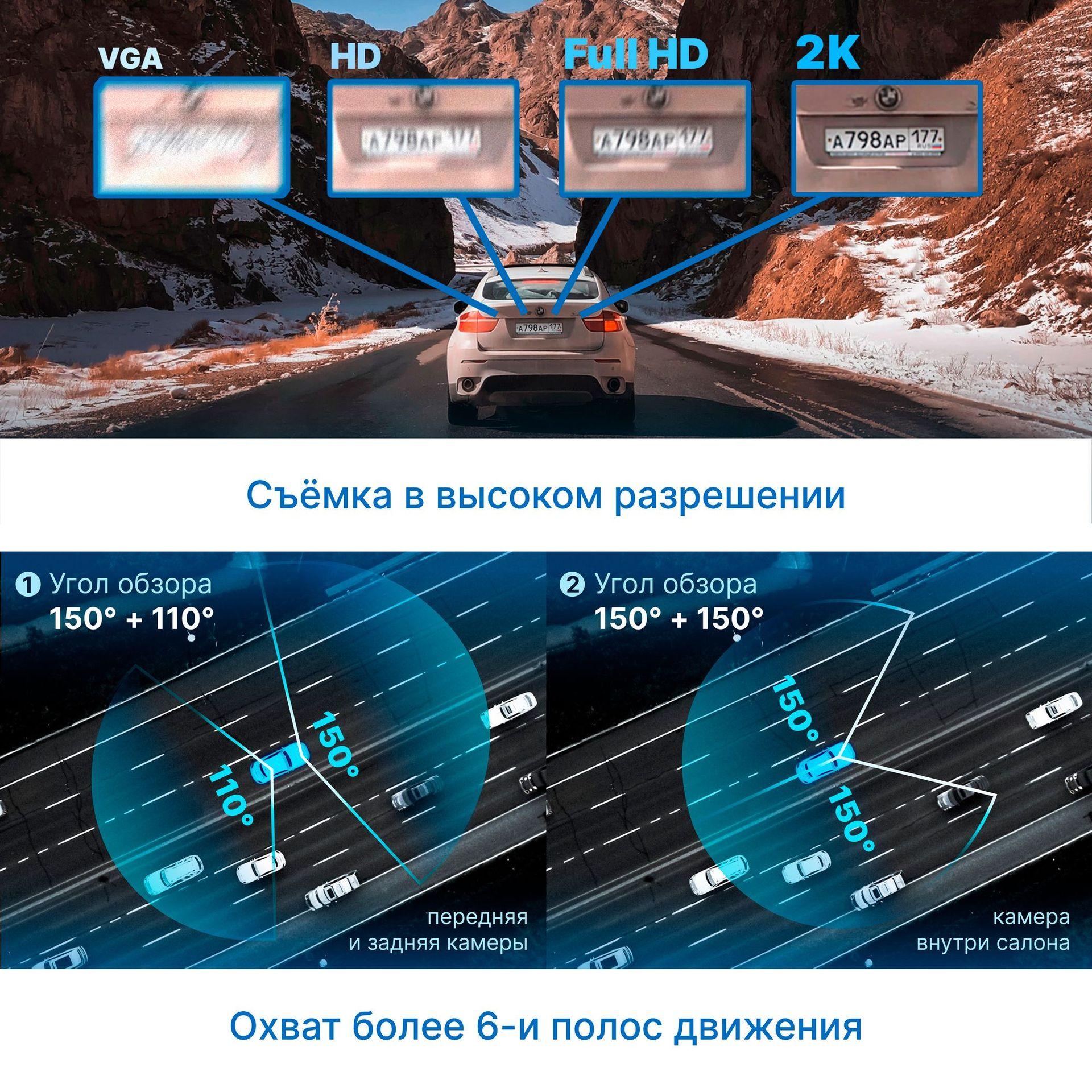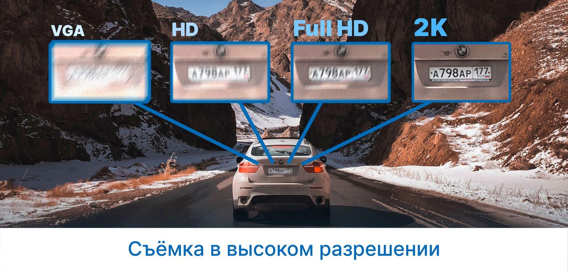 - Высокое разрешение 2К у передней камеры + Full HD у остальных камер (когда подключена задняя камера, Full HD у всех камер)