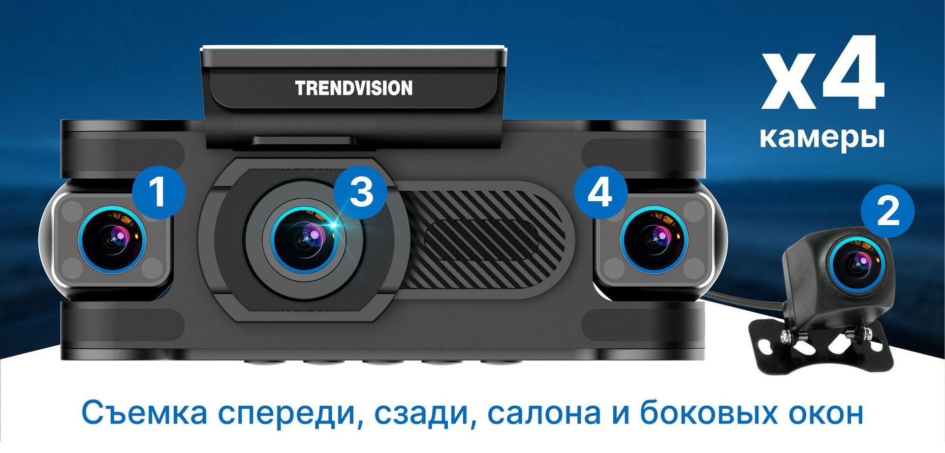 TrendVision Proof 360 GPS ведёт съёмку сразу с 4-х камер, обеспечивая полный охват 360°: фронтальная в 2K контролирует ситуацию на дороге перед авто, боковые Full HD камеры фиксируют салон и боковые окна (актуально при общении с ГИБДД или происшествиях сбоку), а задняя Full HD камера снимает всё происходящее позади автомобиля.