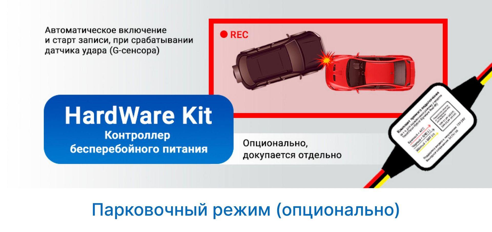 - Парковочный режим (при дополнительном приобретении и подключении кабеля постоянного питания TrendVision HardWare Kit)