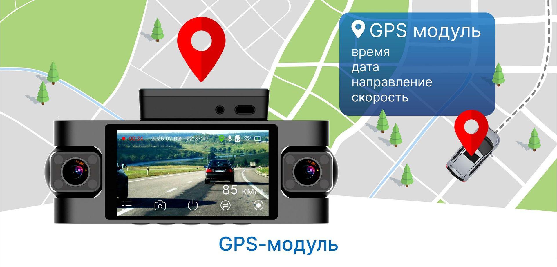 Full HD видеорегистратор с 3 камерами в 1 корпусе и 8 ИК-светодиодами для ночной съёмки. GPS-модуль и задняя камера в комплекте.