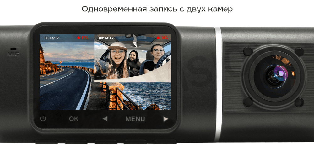При том, что размер видеорегистратора чуть больше спичечного коробка, в его корпусе установлены две камеры. Каждая из них снимает в разрешении Full HD (1920x1080p) – это позволяет зафиксировать все важные события/объекты на дороге и детали происходящего внутри автомобиля.