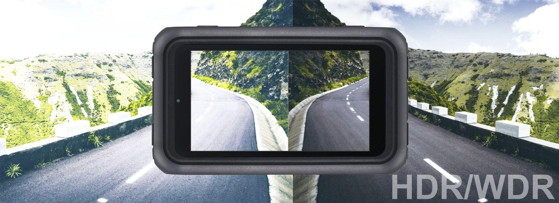 Специальный режим HDR улучшает качество съемки в сложных условиях, при перепадах освещения. Например, когда вы едете против солнца. Или в кадре одна часть дороги и обочины – на ярком солнце, а другая в глубокой тени. Полученная картинка обеспечивает равномерную яркость, без излишнего затемнения или осветления и потери деталей.