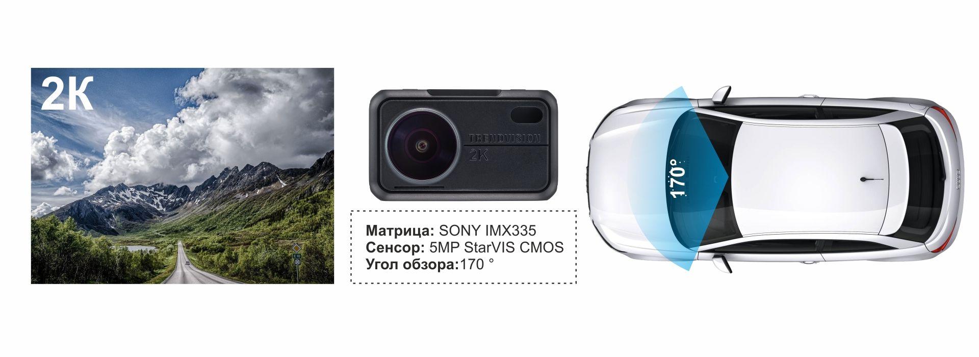 Максимальное разрешение видео – 2K, 2560x1440 пикселей. Это почти в 1,5 раза четче, чем Full HD съемка! Рассмотреть госномера можно на расстоянии до 17 метров. Отличное качество записи в том числе в сумерках и темноте обеспечивает матрица последнего поколения Sony Starvis IMX335 с высокой светочувствительностью и светосильный 7-линзовый тайваньский объектив с диафрагмой f/1.8.