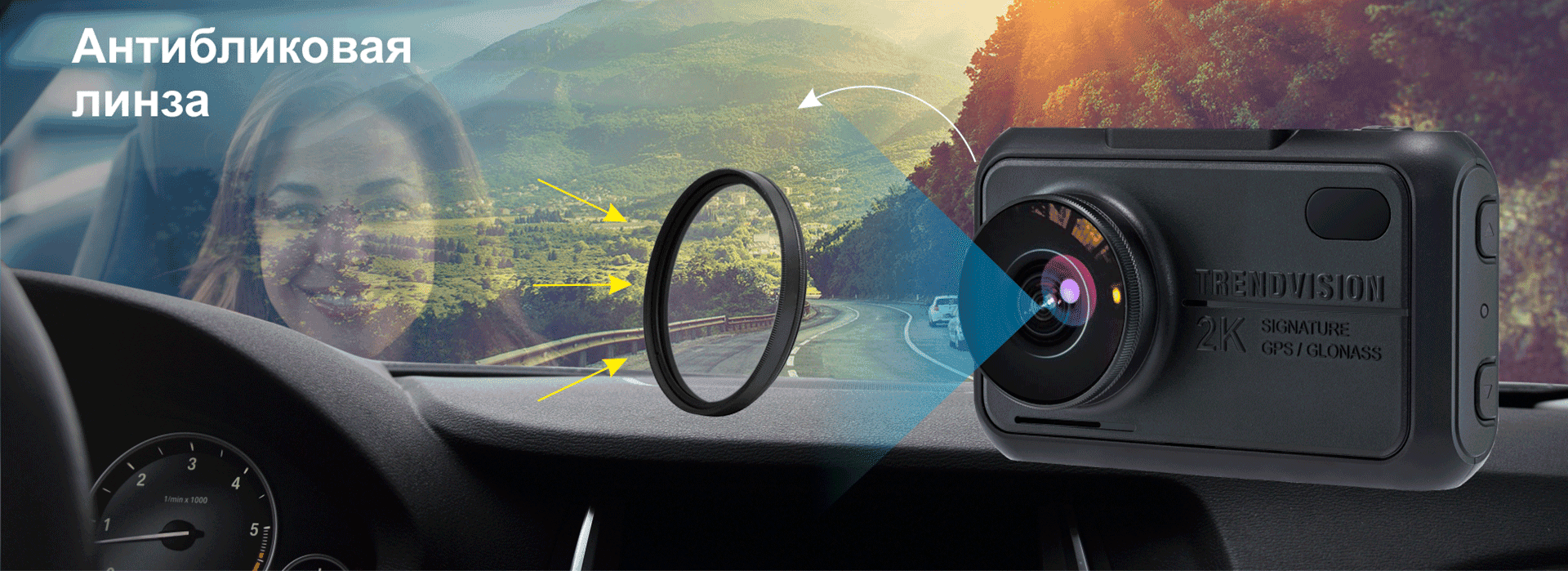 Перед объективом установлен поляризационный CPL-фильтр – прямо как в профессиональной фототехнике. Специальная линза устраняет с лобового стекла блики и отражение панели машины. В результате значительно улучшается читаемость госномеров машин на любой дистанции. Также видео отражения устраняются со стекол других автомобилей в кадре. Поэтому видно происходящее в салоне – что может быть важным при некоторых ДТП.