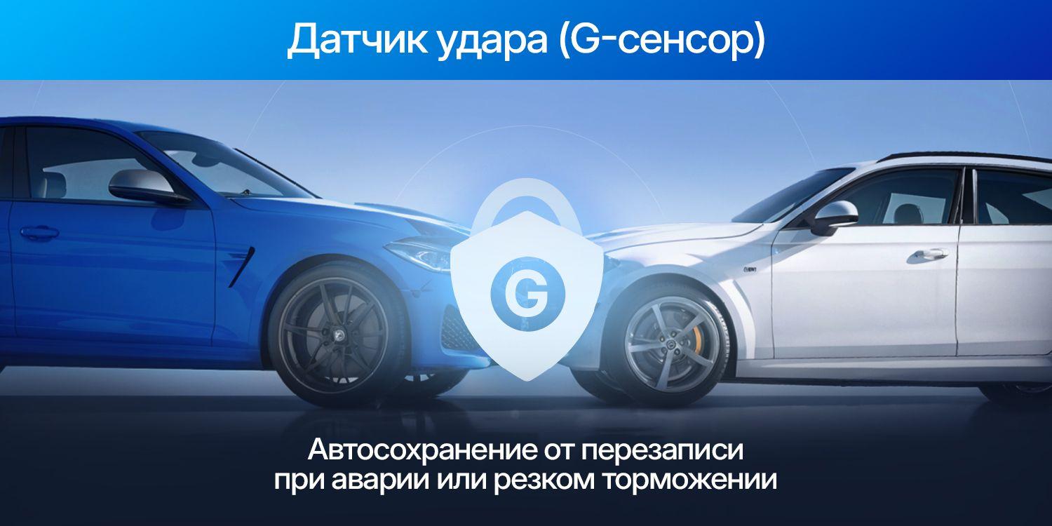 Встроенный G-сенсор фиксирует любые резкие воздействия на автомобиль — столкновение, резкое торможение или удар. В таких случаях текущая запись автоматически помечается как защищённая и не может быть удалена или перезаписана. Это гарантирует сохранение важных доказательств в памяти устройства.