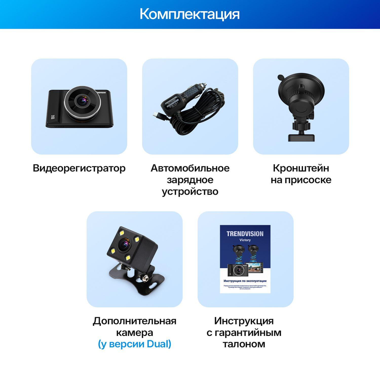 TrendVision Victory Dual - видеорегистратор, который записывает видео в формате Full HD и оснащён ярким IPS-дисплеем 3", обеспечивающим удобный просмотр записей и работу с меню. Благодаря увеличенному углу обзора 170° в кадр попадает больше деталей дорожной обстановки, а такие функции, как WDR и ночной режим, делают картинку чёткой при любом освещении. Быстросъёмное магнитное крепление со сквозным питанием позволяет легко снимать и устанавливать устройство без лишних проводов - подключение происходит автоматически при установке на кронштейн. Дополнительно регистратор поддерживает парковочный режим, фиксируя происходящее вокруг автомобиля даже во время стоянки. Задняя камера в комплекте