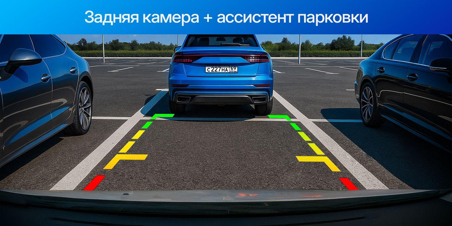 К видеорегистратору можно подключить заднюю камеру (уже в комплекте), что значительно расширяет его функционал. Она фиксирует дорожную ситуацию позади автомобиля во время движения и помогает при парковке. При подключении камеры к бортовой системе и включении задней передачи на экране автоматически отображается изображение с нанесёнными парковочными линиями, которые позволяют точно определить расстояние до препятствий и безопасно выполнить манёвр.