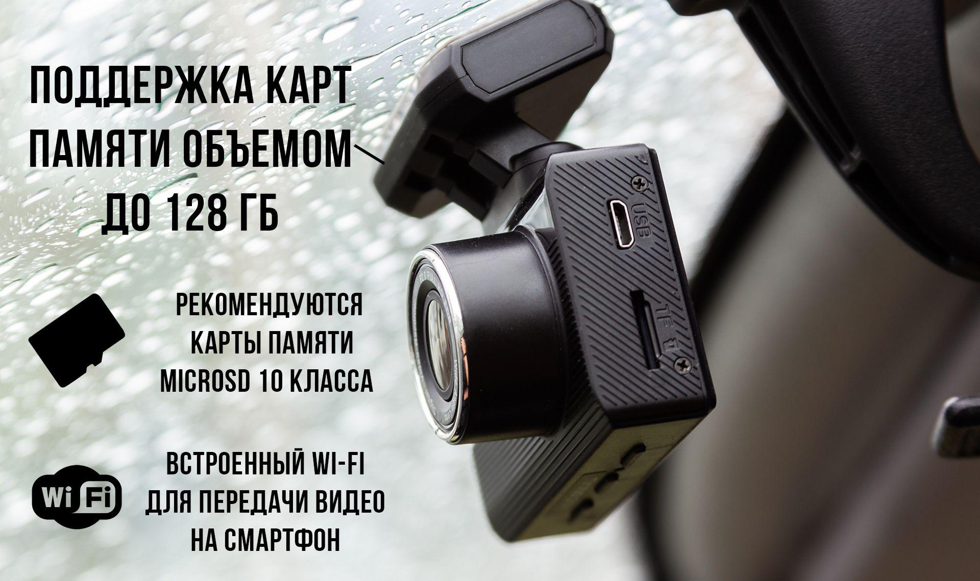 Встроенный Wi-Fi даст возможность в случае необходимости быстро перенести видео на смартфон. (Подключение к приложению на смартфоне осуществимо только от оригинального зарядного устройства или зарядного устройства с параметрами заявленными в характеристиках).