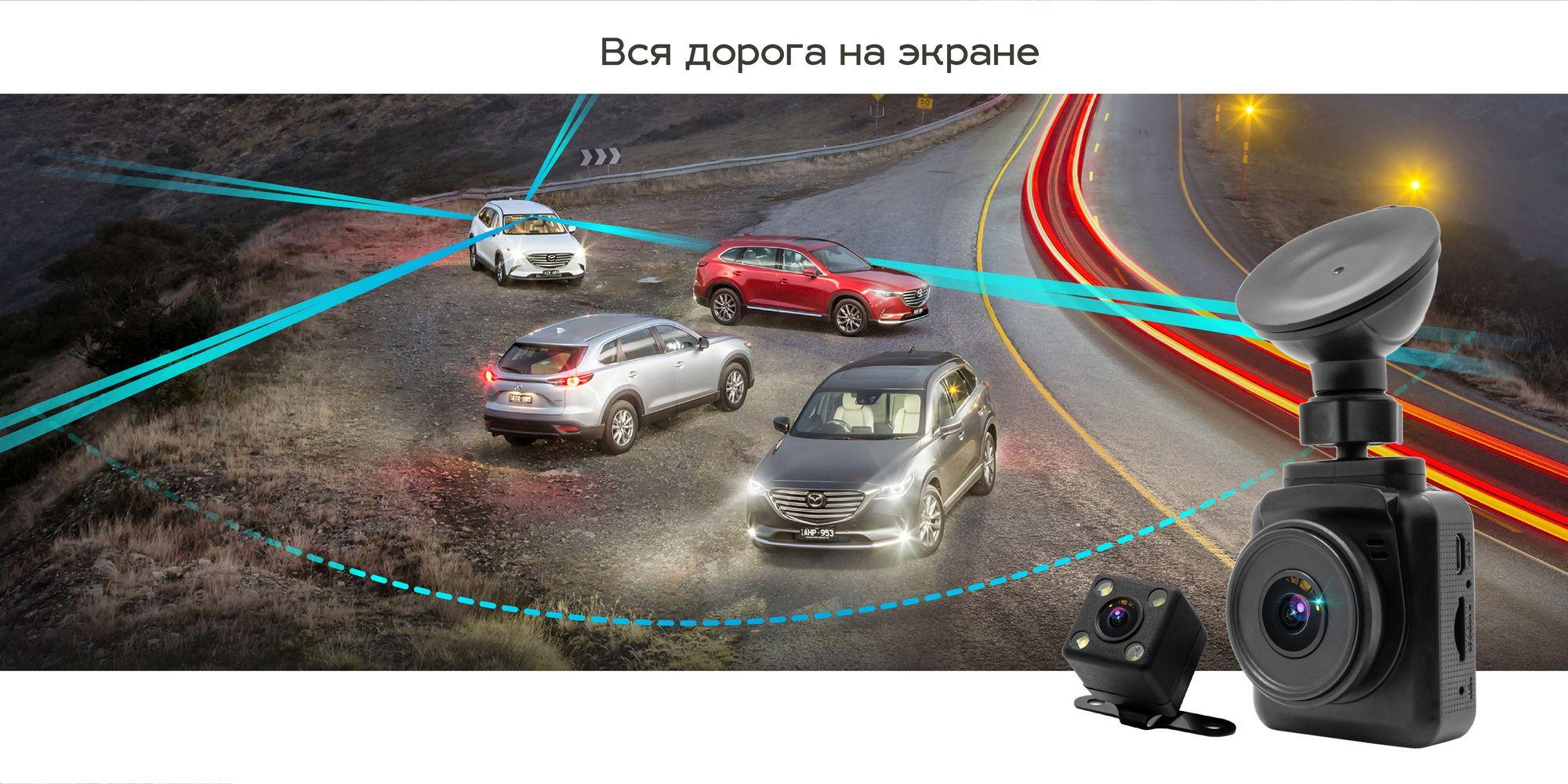 Угол обзора в 170° охватывает пространство не только перед автомобилем, но и по всей ширине проезжей части, также умещая в кадр и пешеходную зону. Это позволяет наиболее полно зафиксировать действия пешеходов или другого водителя перед аварией. А учитывая то, что на видео отображается более четырех дорожных полос, есть возможность заснять произошедшее рядом ДТП и помочь другому автомобилисту, не имеющему регистратора.